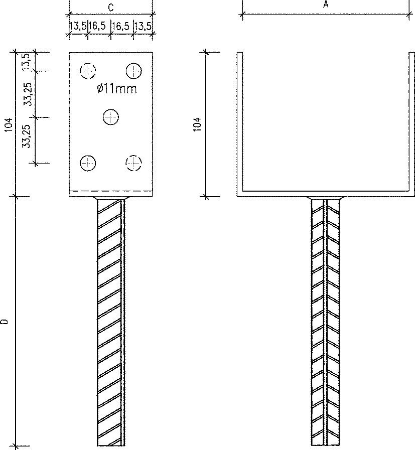 U-Type Post Base 60 – for narrow timber posts in concrete