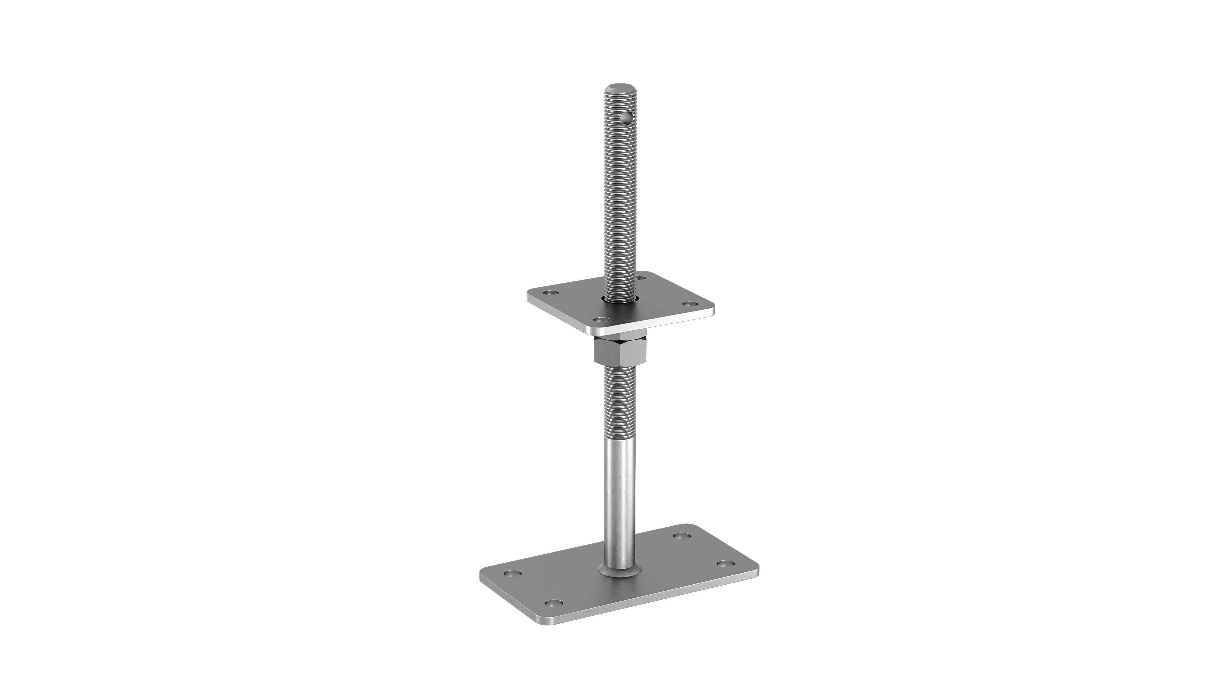 This post base meets the requirements of Use Class 3 and features our high-quality ZinTOP coating. Height adjustment is achieved via threaded rod. The top plate is welded for maximum durability. Ideal for concealed connections on concrete foundations.