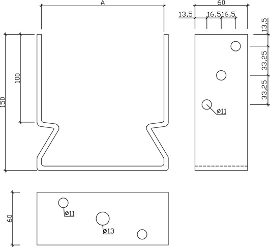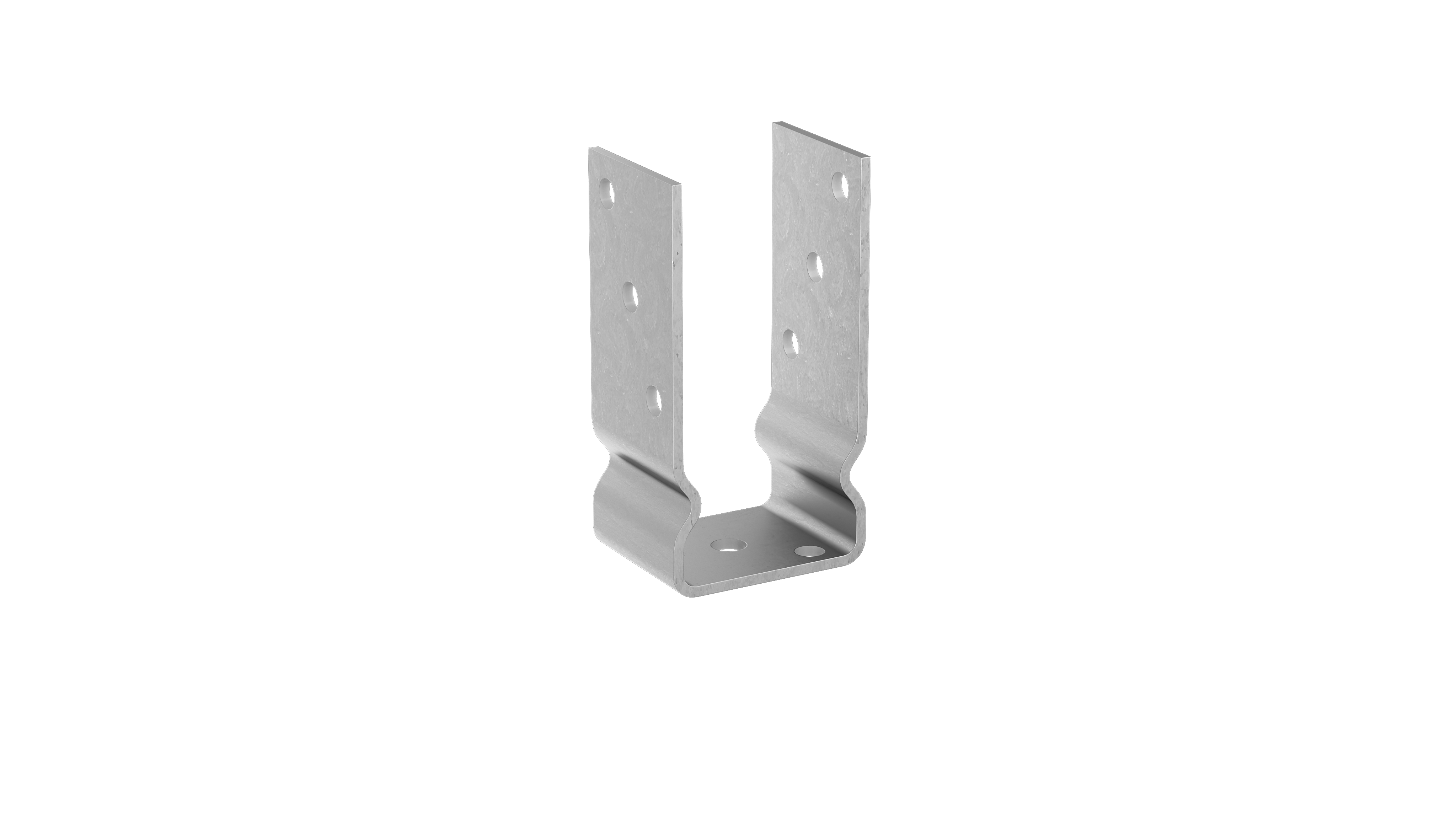 Der Typ S-B ist ein seitlich offener Pfostenträger zur Aufdübelung auf Beton, ausgestattet mit einem eingestanzten Wulst für zusätzliche Stabilität.